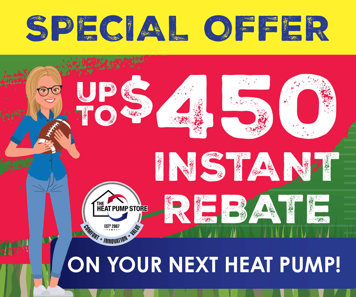 From September 1 – November 30, 2025, you could save up to $450.00 on a ductless heat pump. Rebates are available on select models. Contact us to get started.
